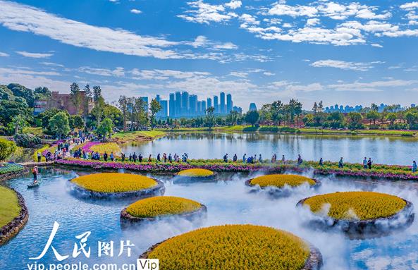 2025年11月23日,游客在广西南宁市青秀山风景区丘石花园里游玩赏花。曾祥忠摄(人民图片网)